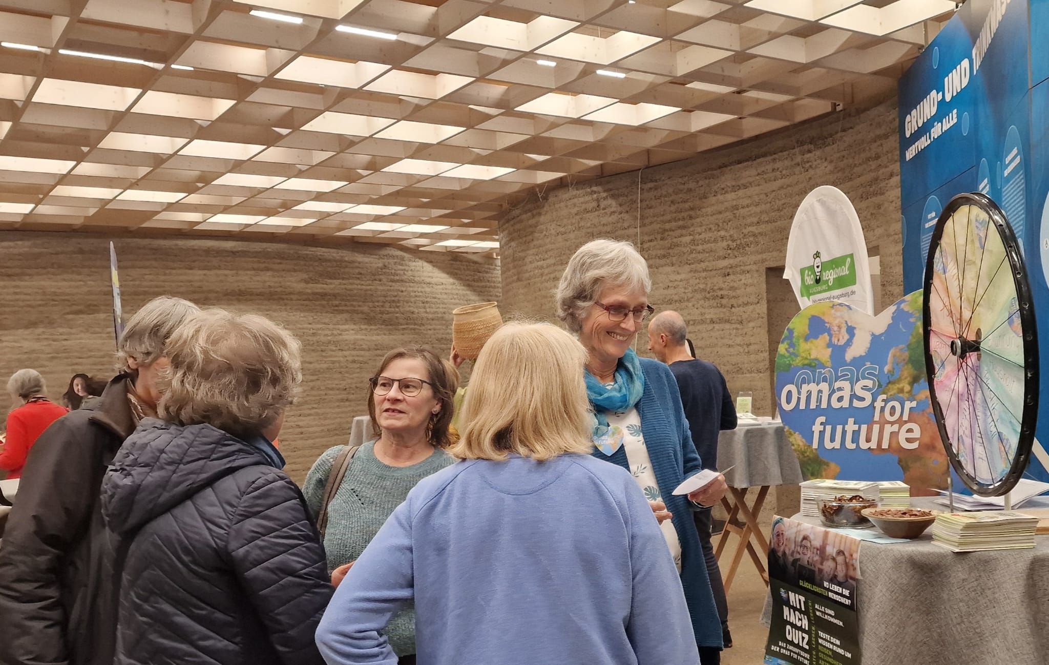 Mit dem Zukunftsquiz waren wir im „Wohnzimmer“ im Schwabencenter, in Schulen und in der Agenda 21. Für unseren Infostand haben wir seit Herbst 2024 ein schönes Glücksrad. Und Cordula hat bei uns in der Stadtbücherei vor ca. 50 Zuhörern ihren inspirierenden Vortrag gehalten.