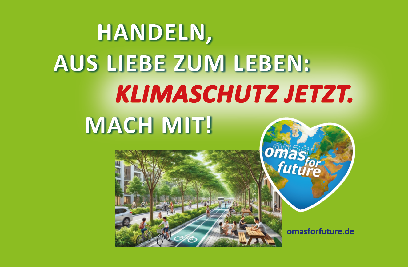 Wir, die Regionalgruppe München der Omas for Future, engagieren uns ehrenamtlich für Umwelt- und Klimaschutz – aus Verantwortung für unsere Kinder und Enkel. Wir möchten Natur, Umwelt und Klima bewahren und eine gute Zukunft sichern. Dabei fangen wir bei uns selbst an und zeigen, wie ein nachhaltiger und klimafreundlicher Alltag gelingen kann – beim Wohnen, Reisen, Einkaufen, in der Ernährung und Mobilität.